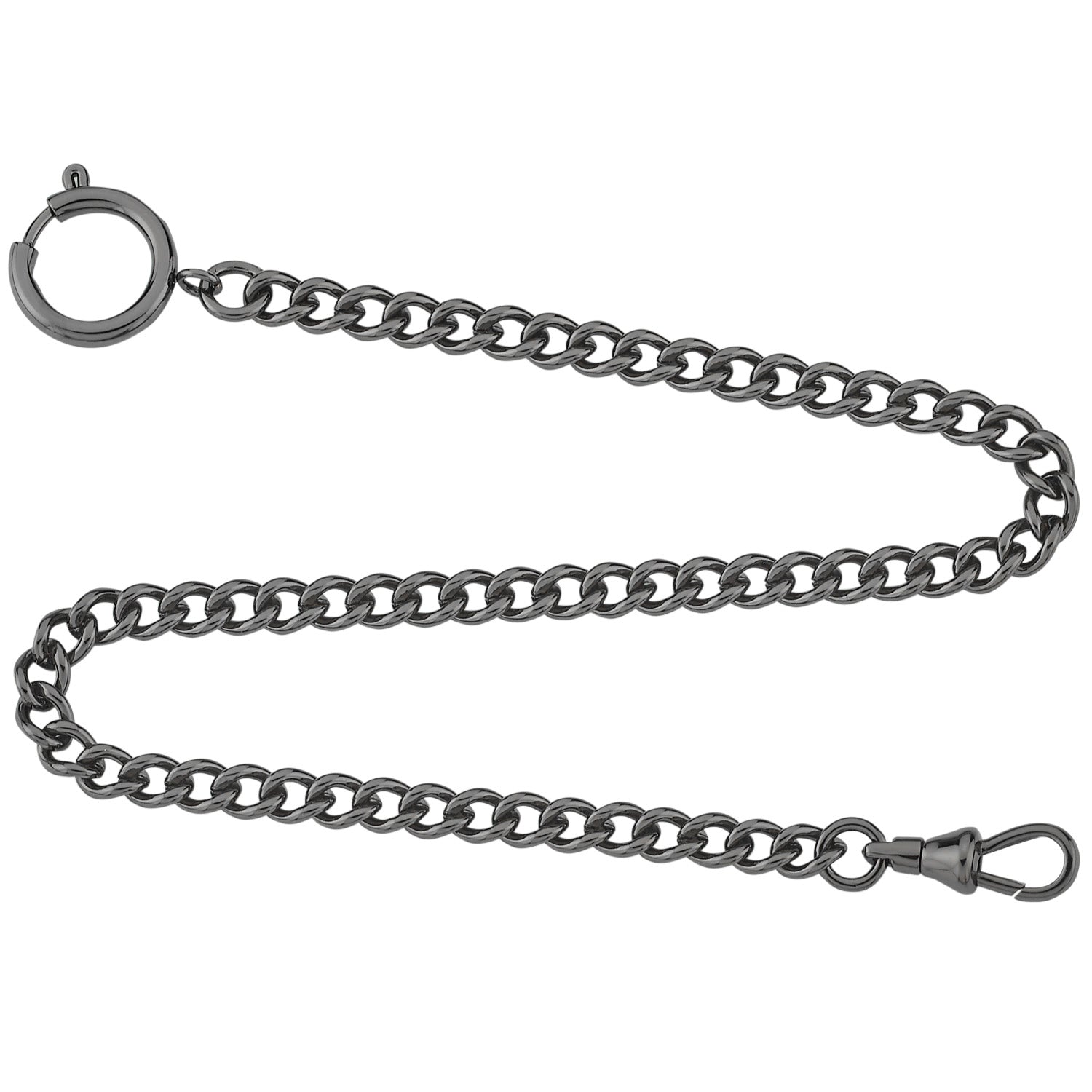 Features include a 17 jewel mechanical hand wind small seconds movement, gunmetal plated stainless steel case, silver hands, mineral glass crystal plus 30 meters water resistant. The classic railroad style dial features bold Arabic numbers, 60 second outer track and small seconds subdial. In addition, a deluxe 14 inch curb chain with spring ring closure is included. As always, all Gotham watches include operating instructions and lifetime warranty.